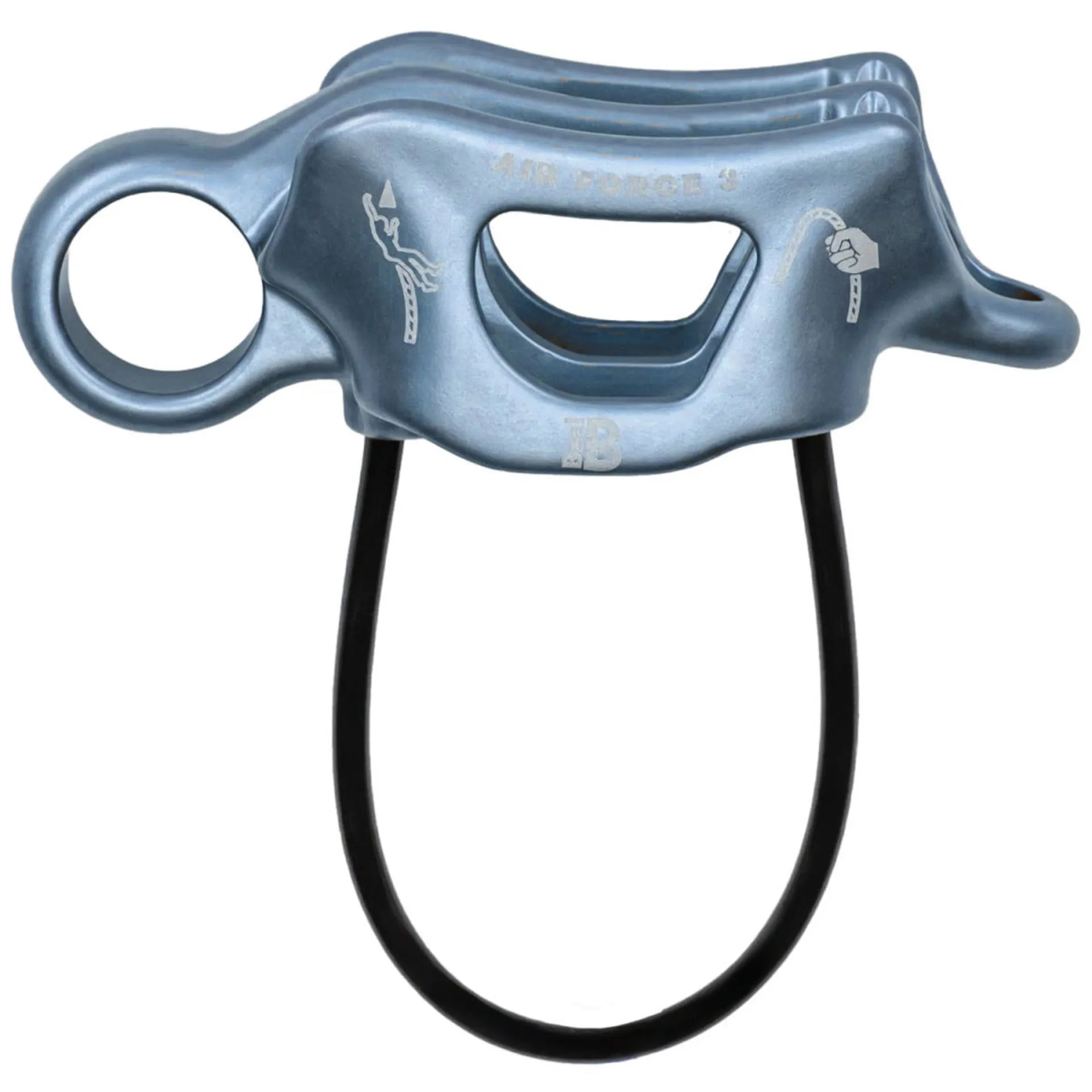 Air Force 3 belay and rappeller device, compatible with single, medium and double ropes. It offers smooth braking and excellent energy absorption in the event of a fall.