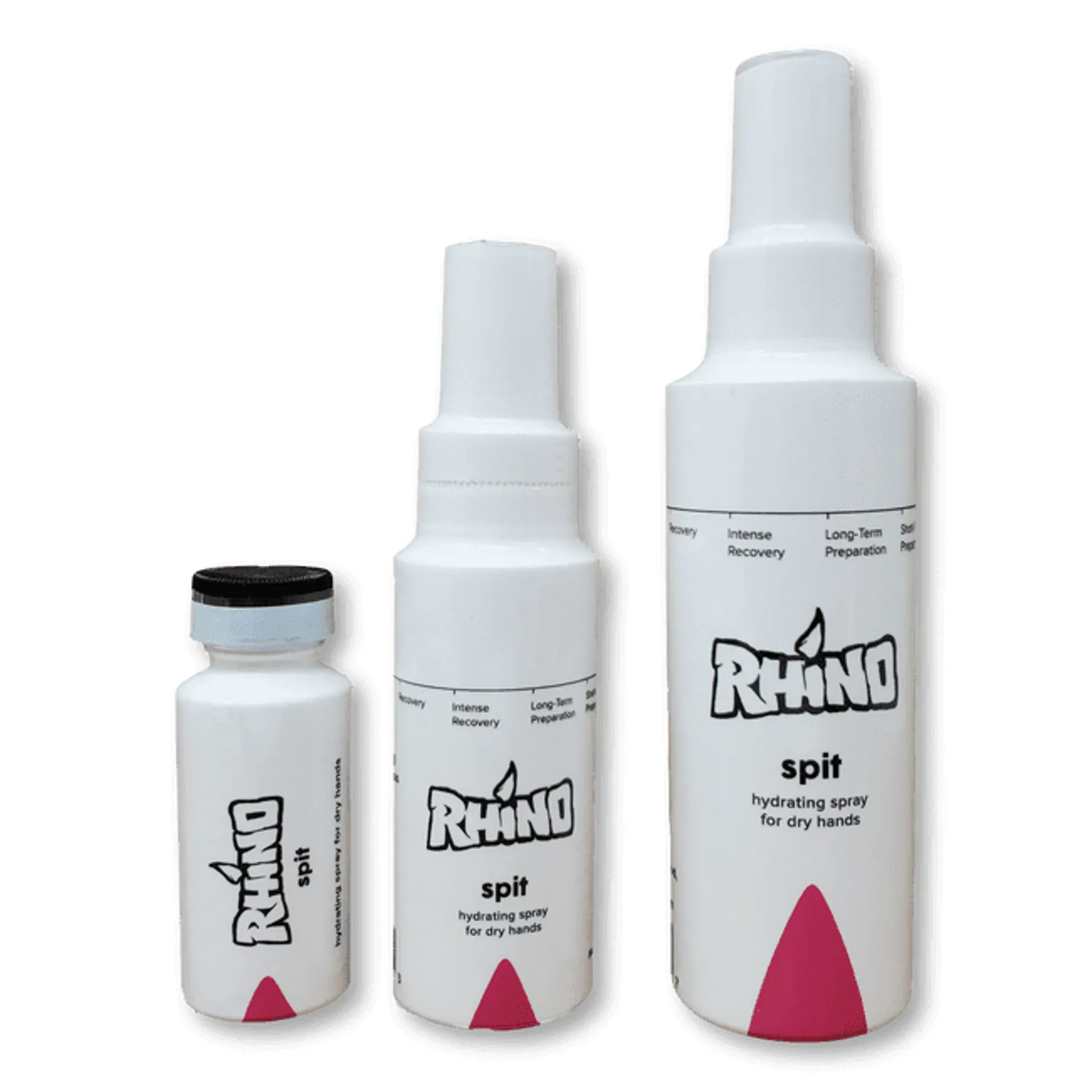 Rhino Skin Solutions Spitis a spray-on encapsulated moisture replacement for those with very dry hands. Highlights: Promotes skin elasticity- minimising splits, dry fires, and glassy skin. Apply1-5 minutes beforeclimbing, let dry and climb.